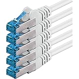 1CONN 5x 1,5 M - Câble réseau CAT-6a Câble Ethernet Lan Patch Connecteur RJ-45 SFTP 10GB/s - Pack de 5 Blanc